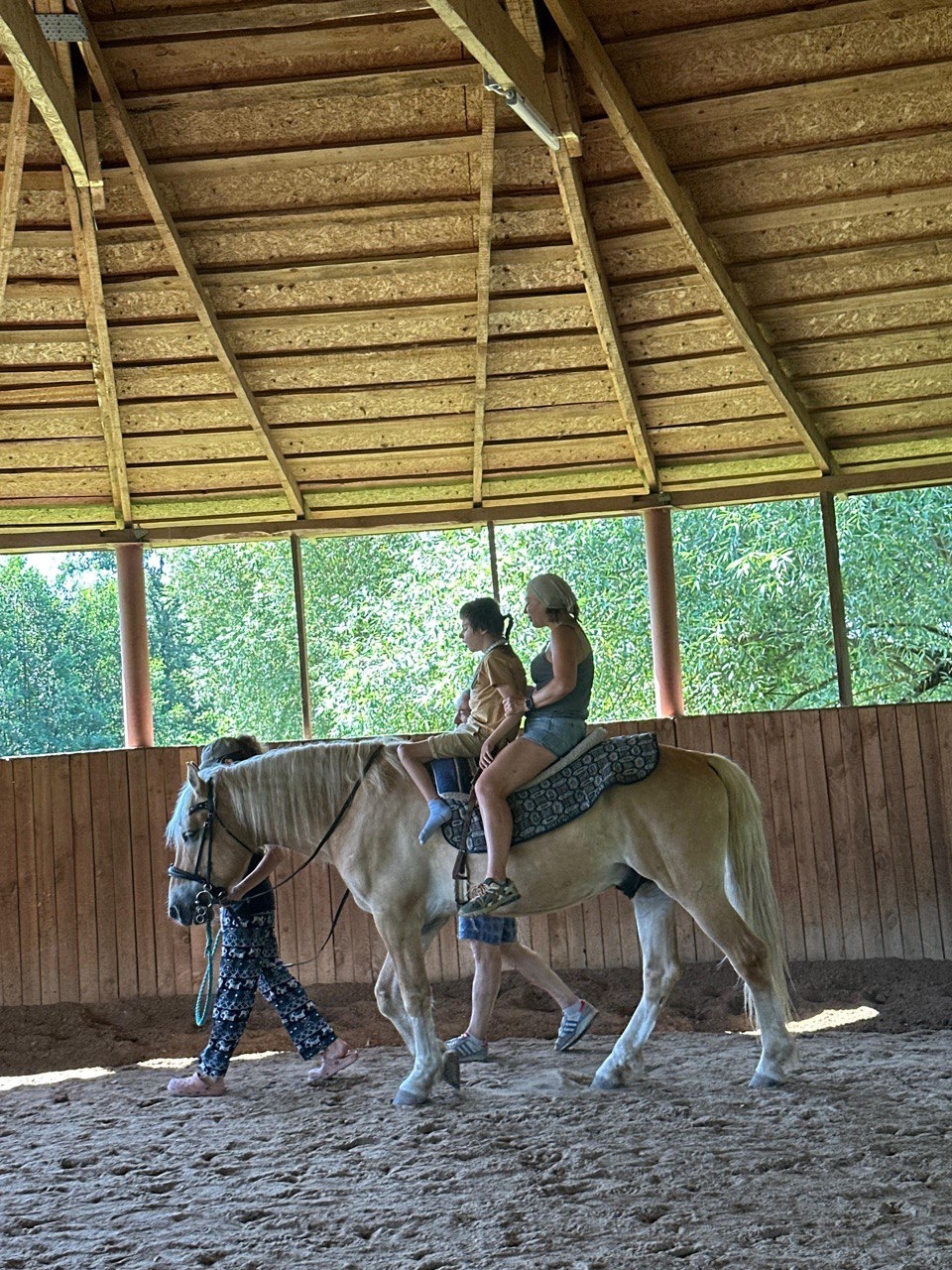 Сердечно благодарим Юлю и весь коллектив клуба «Берегиня» за самоотверженный труд! Этим летом нашему Марку посчастливилось пройти два интенсива! Считаем эти занятия очень эффективными, так как каждый раз открываем в нашем ребенке новые способности! Марк оседлал нового высокого коня — Геру! Научился на нем сидеть по-турецки!!! Улучшился сон!! Что очень важно в процессе занятий Марку удается расслабиться, это очень нужно! Также интенсив позволяет посвятить больше времени общению с животными, познакомиться с жизнью конюшни! В этот раз удалось покормить лошадей, помочь приносить сено им в кормушки! Также очень полезны рекомендации и подбор упражнений для повседневных занятий, чтобы закреплять результаты интенсивов! Еще раз спасибо за такую возможность, уже выбираем время для следующих интенсивов! С благодарностью, мама Марка.