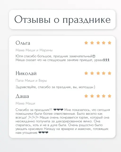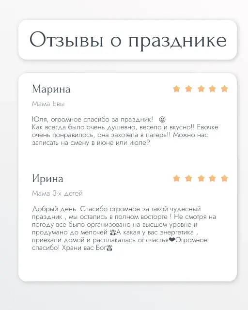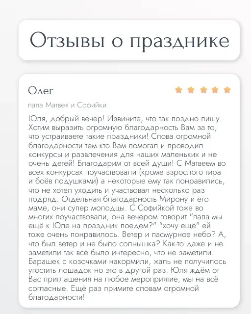 После праздника пришло много отзывов нам в личку и мы решили поделиться ими с Вами. Очень рады, что праздник всем понравился и запомнился! Мы старались.